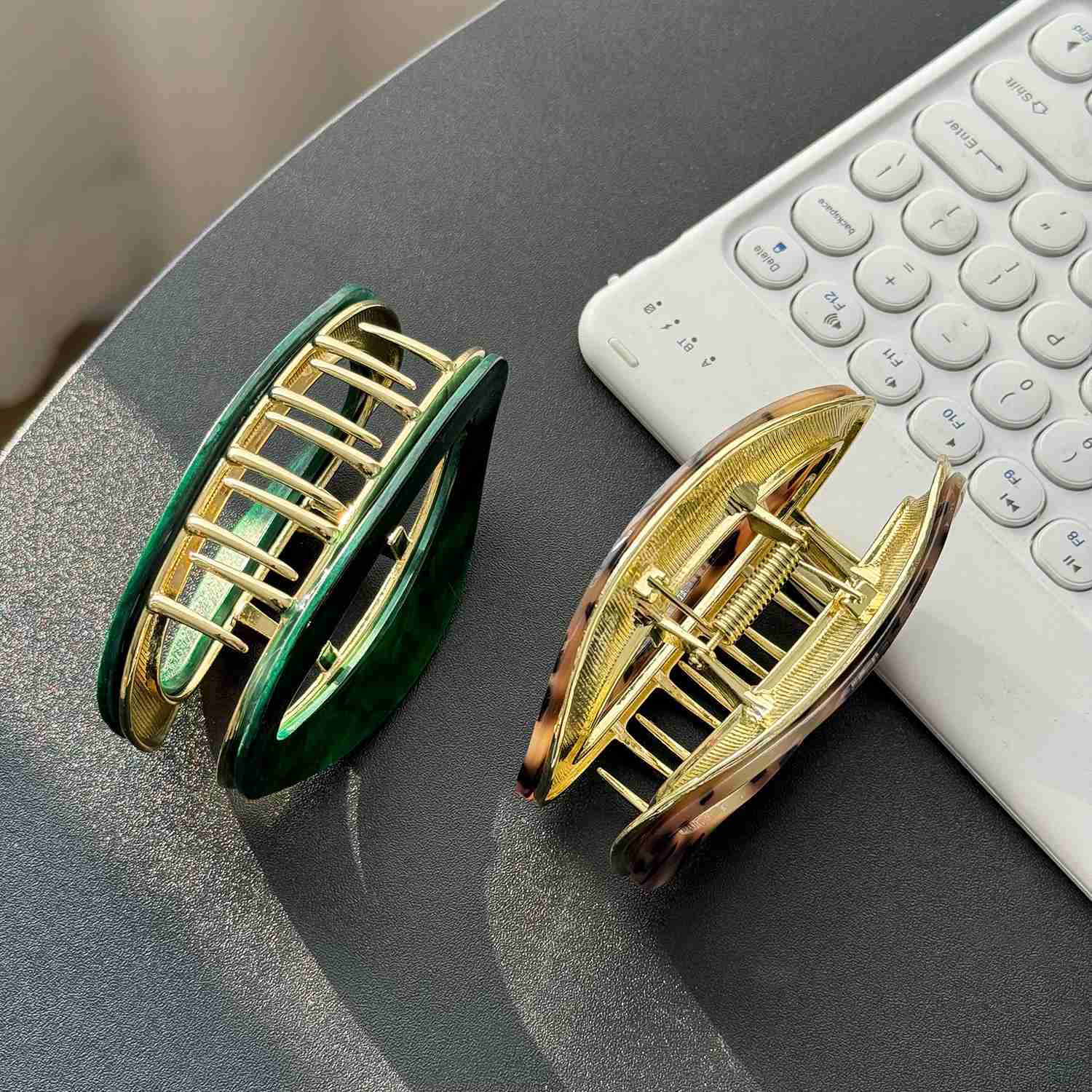 Esos clips de cabello de concha de tortuga para mujeres presentan un patrón popular ahuecado con manchas, no solo adorna tu cabello, sino que también logra un temperamento elegante y dulce, te hace encantador y elegante.